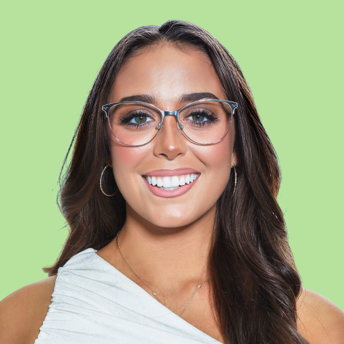Cat Eye Eyeglasses 157216-c are beautifully designed cat-eye frames that have nice design aesthetics to pair with any outfit you desire. The cat-eye lenses look even more beautiful thanks to the subtly curved front design that has alluring studs around the corners and seamlessly designed slender temples on the sides. These frames come with enticing finishes that add more elegance to this look. The lightweight metal structure ensures that you can wear them comfortably, and the spring hinges provide a secure fit. Buy these glasses at the best prices with the promise of a great customer experience.