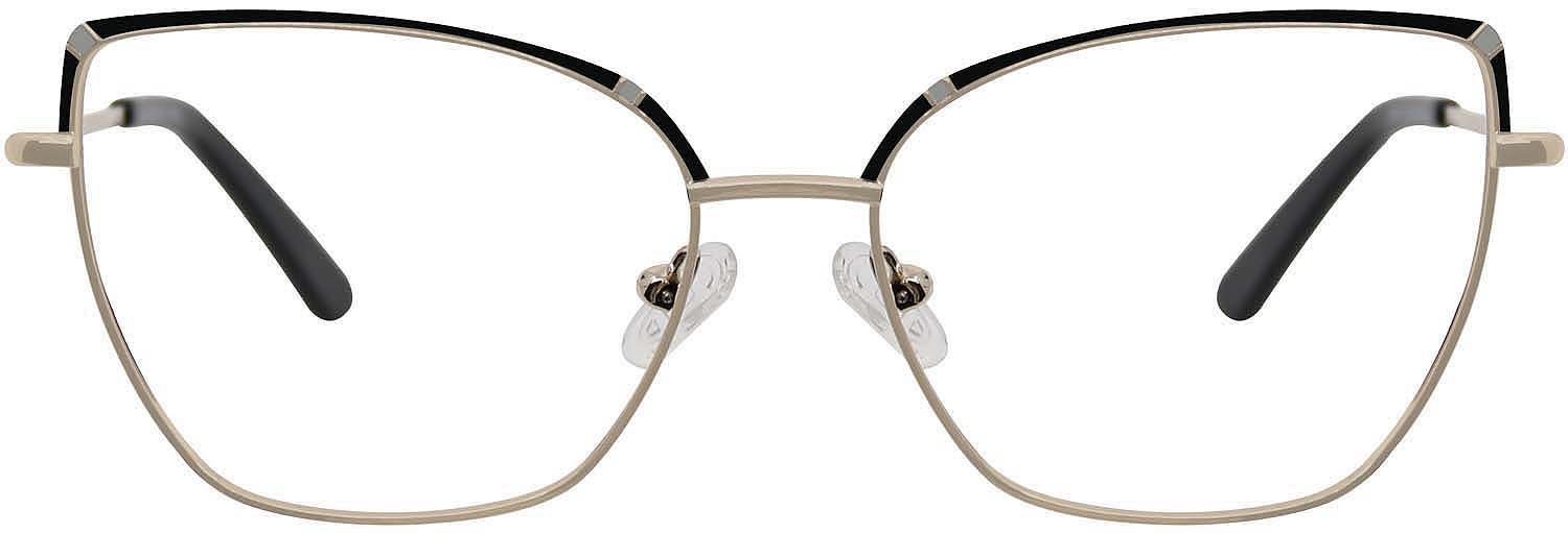 Cat Eye Eyeglasses 157364-c are appealing cat-eye frames with a unique full rim design. These frames showcase stylish cat-eye lenses in a horn-shaped front design that has minor but captivating details on the corners and is seamlessly joined by the slender temples on the sides. The eye-catching finishes of these frames nicely suit this intriguing look. These frames are designed of lightweight metal, and they feature spring hinges to guarantee a pleasant use. Buy these glasses at the best prices with the promise of a pleasant customer experience.