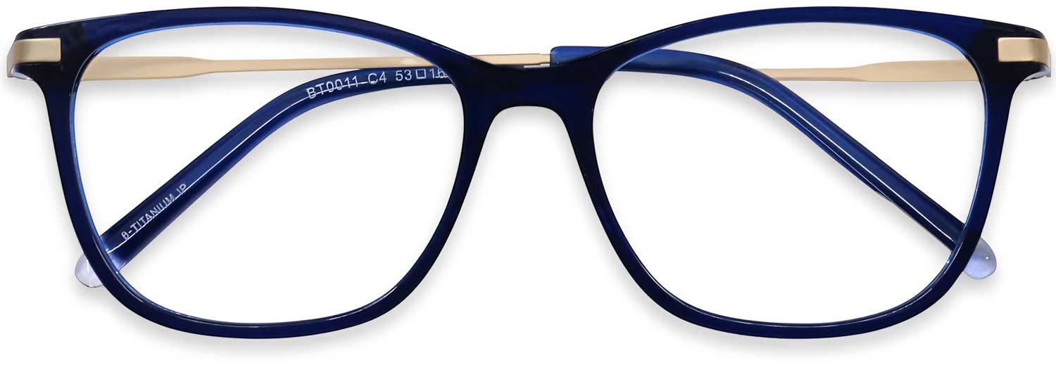 Cat Eye Eyeglasses 183141 are high-quality, elegantly designed frames featuring a stunning full-rim design. These frames showcase stylish cat-eye lenses complemented by a refined horn-shaped front and sleek, slender temples on the sides for a sophisticated appearance. The captivating blue-gold finish lends a graceful touch of finesse that enhances their retro-inspired charm. Crafted from a combination of lightweight TR-90 material and metal, these frames offer both durability and comfortable wear. Add these glasses to your attire at the best prices, with the promise of a pleasant customer experience.