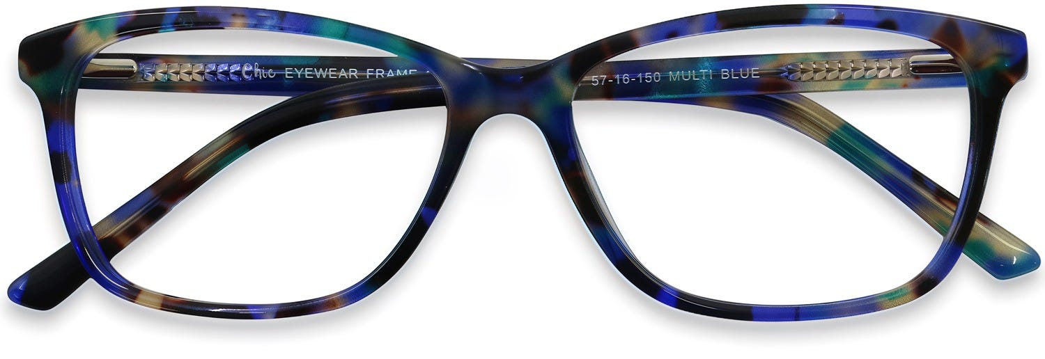 Cat Eye Eyeglasses 185147 are highly alluring and elegant-looking frames featuring a classy full-rim design. The stylish cat-eye lenses are beautifully complemented by a refined horn-shaped front design and dainty flat temples on the sides. Finished in an appealing multi-blue tone that enhances their striking allure, these frames are crafted from lightweight TR-90 material and feature spring hinges, ensuring a comfortable and snug all-day fit. Buy these glasses at the best prices with the promise of a great customer experience.