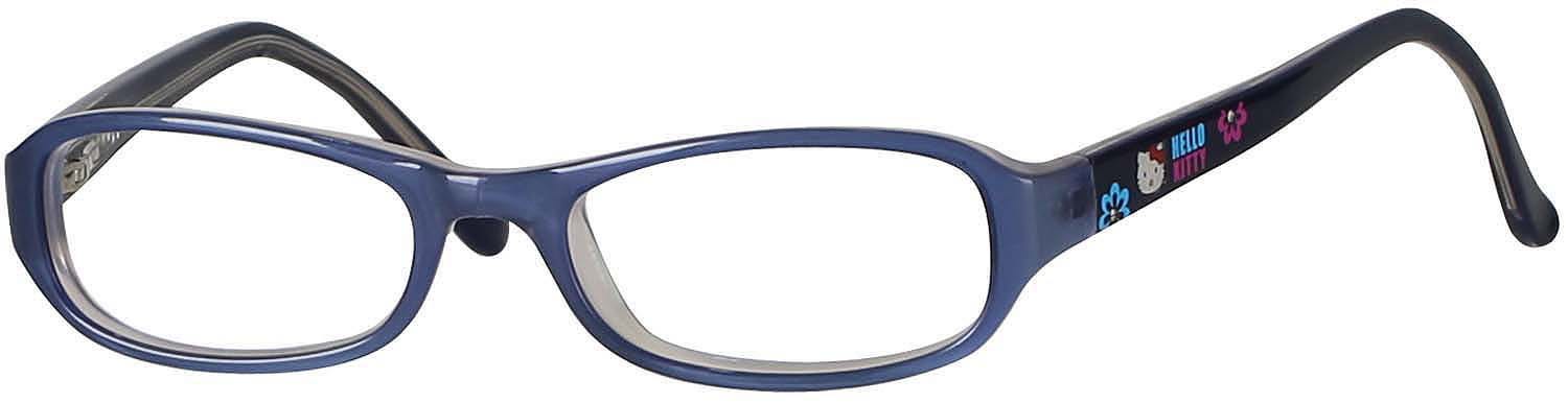 Hello Kitty HK 242-2 Eyeglasses are well-made, elegant, and light-weight frames made of TR-100 material; these frames are so light that you won't even notice you're wearing them, and they have spring hinges for added durability; these frames feature the always-popular rectangle design with classic blue color and beautiful printed patterns, and gorgeous rhinestones add even more appeal; and these frames will come in a lovely goggles 4u case; add these beautiful glasses in your outfit at the best prices guaranteed and confidence of great quality.