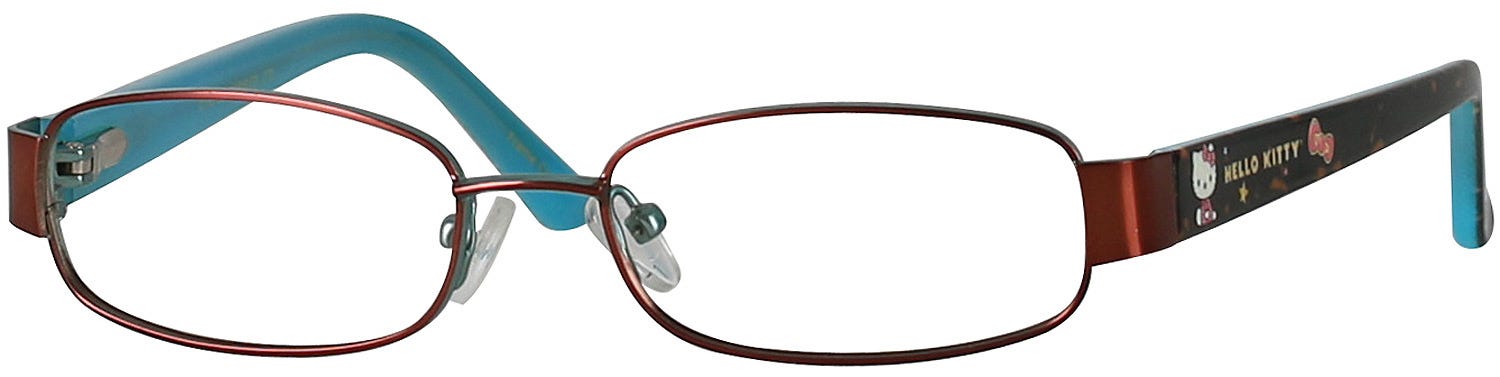 The Hello Kitty HK251-1 Eyeglasses are well-crafted, trendy, and appealing rectangle combination frames crafted of high-quality materials with spring hinges for increased durability. With their gorgeous modern rectangle shape, elegant brown color, and beautiful printed patterns, they will add a finishing touch to your outfit; these frames will come with a lovely goggles 4u case; add these exquisite glasses to your wardrobe at the best prices guaranteed and the assurance of a fantastic customer experience.