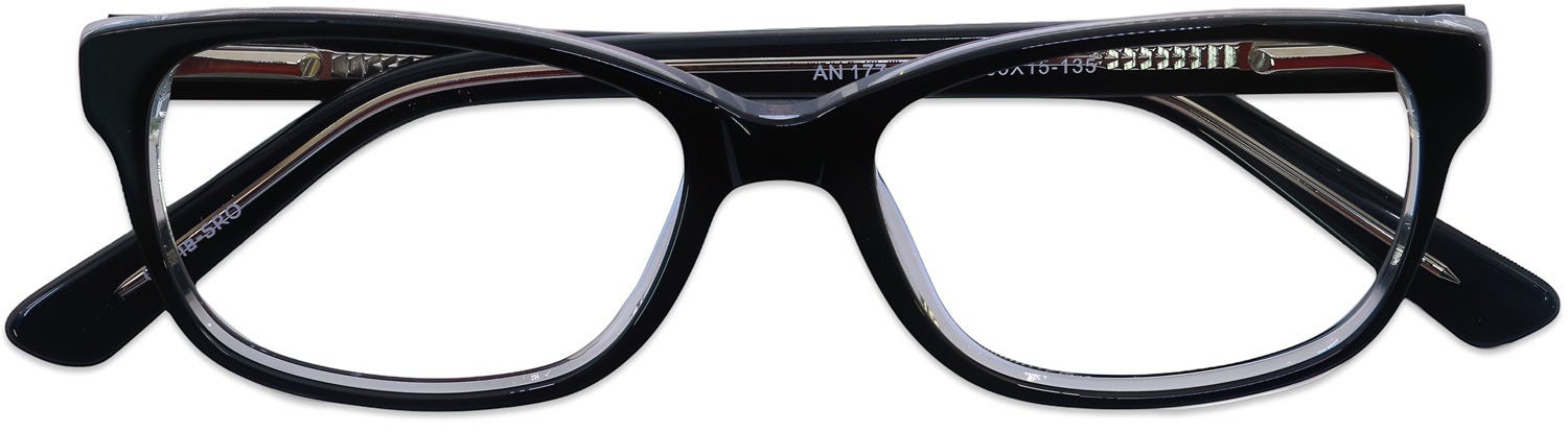 Kids Eyeglasses 185489 are strikingly sophisticated rectangle frames featuring an elegant full-rim construction. These spectacles perfectly complement your child's wardrobe with their refined silhouette, showcasing a captivating front profile and sleek flat temples. The distinctive black-clear finish creates exceptional visual appeal and modern contrast. Crafted from durable yet featherweight TR-90 material, these frames incorporate spring hinges to ensure comfortable all-day wear. Purchase these glasses at the best prices with the promise of a quality customer experience.