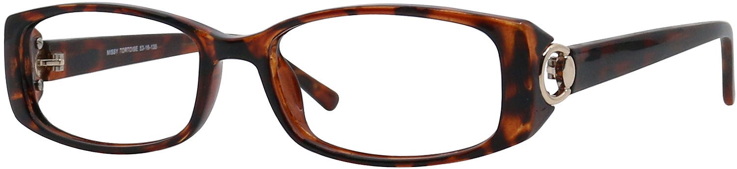 Missy Eyewear are stylishly designed, alluring-looking rectangle frames with a gorgeous and alluring full-rim design. These frames feature stylish rectangle lenses in a classy front design that has a nice sleek look and is joined by the stylized wide flat temples on the sides that have a unique and dainty hinge design. The alluring tortoise finish of these frames lends even more allure to this dainty look. These frames are lightweight and comfy thanks to their TR-100 structure. Purchase these glasses at the best prices with the promise of a quality customer experience. These glasses will come packaged in a lovely Goggles4U case.