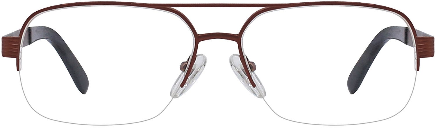 Pilot Eyeglasses 171768 are highly alluring and elegant-looking frames with a sophisticated half-rim design. The appealing pilot-shaped half-rim design of these frames comes with the enticing double nose bridge up front and the stylized flat temples on the sides that have appealing ridged details. The captivating brown finish of these frames allures this look nicely. These frames are designed from lightweight metal and feature spring hinges for a pleasant fit. Buy these glasses at the best prices with the promise of a great customer experience.