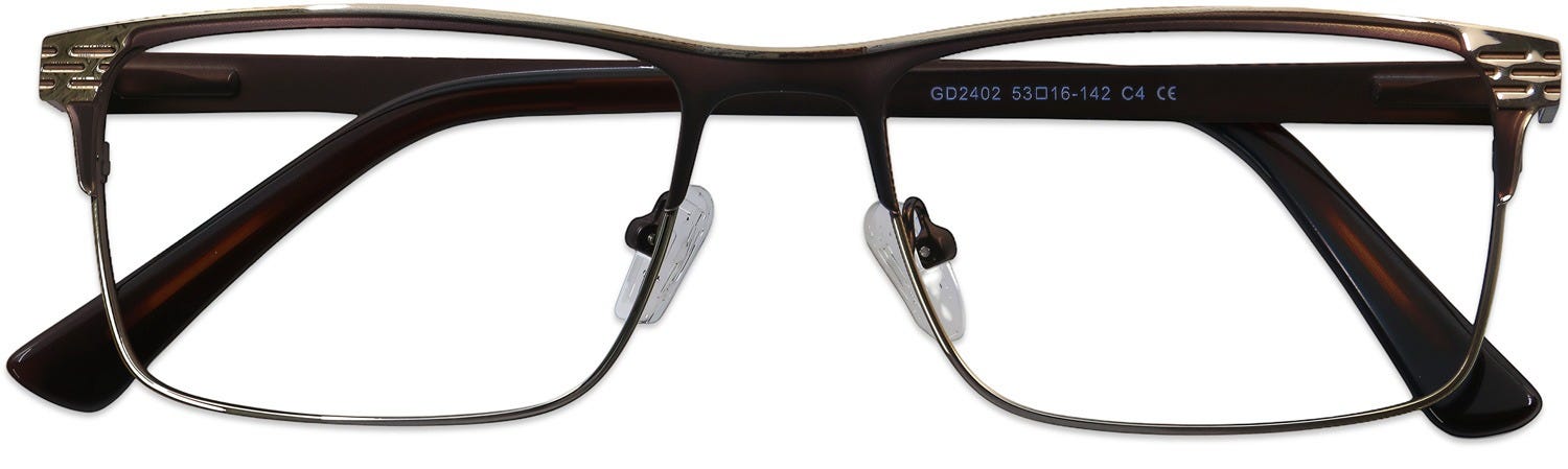 Rectangle Eyeglasses 184910-c are high-quality, alluring-looking rectangle frames with a classy full-rim design. The stylish rectangle lenses are beautifully complemented by a refined front design featuring neatly carved details and enticing lens rims, along with dainty temples on the sides. These frames boast classy finishes that lend a nice touch of finesse to their retro allure. Crafted from lightweight metal, they feature spring hinges for a pleasant and comfortable fit. Purchase these glasses at the best prices with the promise of a quality customer experience.